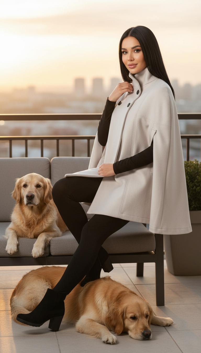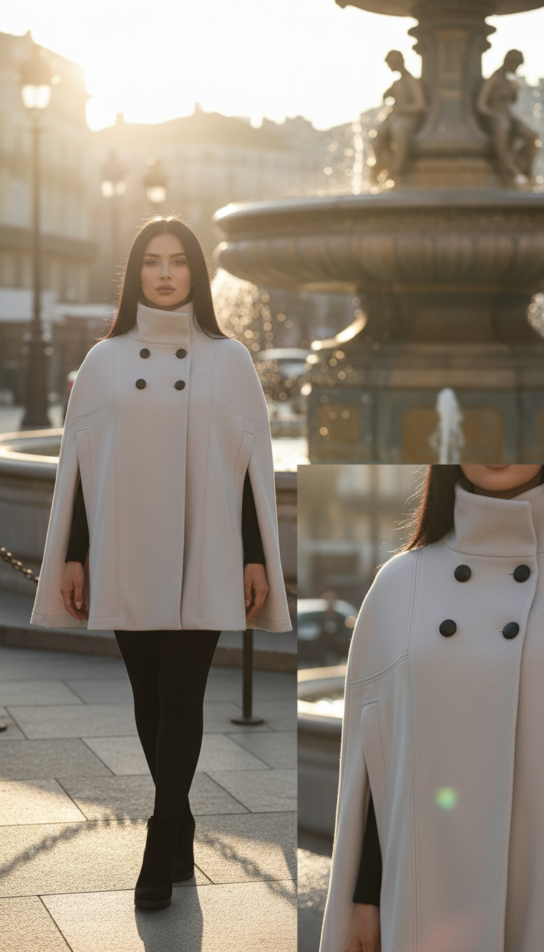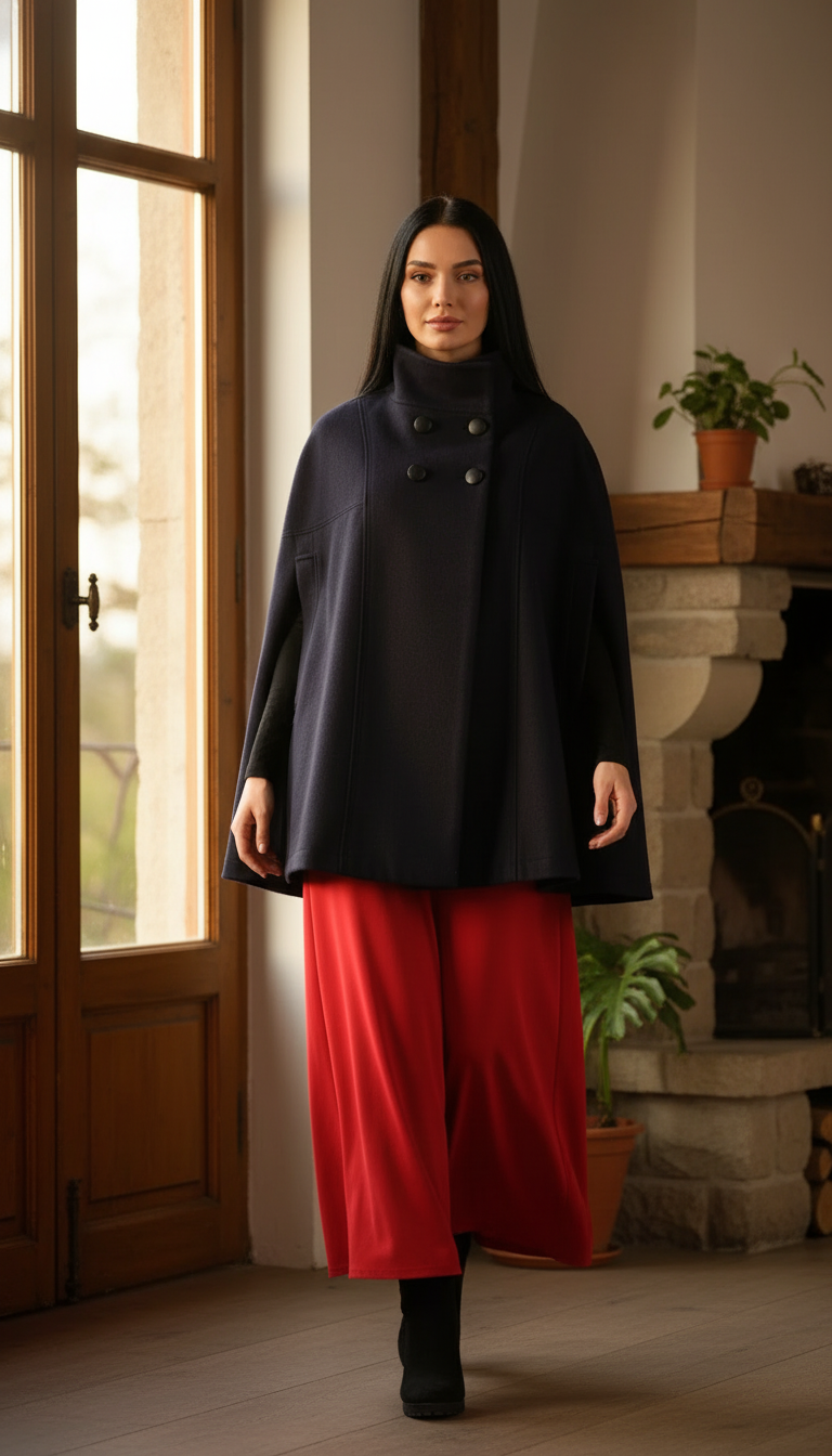 Stay stylish and cozy this winter with our premium wool cape. Designed for ultimate comfort and warmth, this piece features a chic oversized fit, classic button detailing, and sleeve openings for effortless movement. A timeless addition to your wardrobe, perfect for layering over any outfit