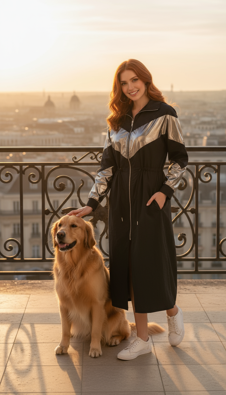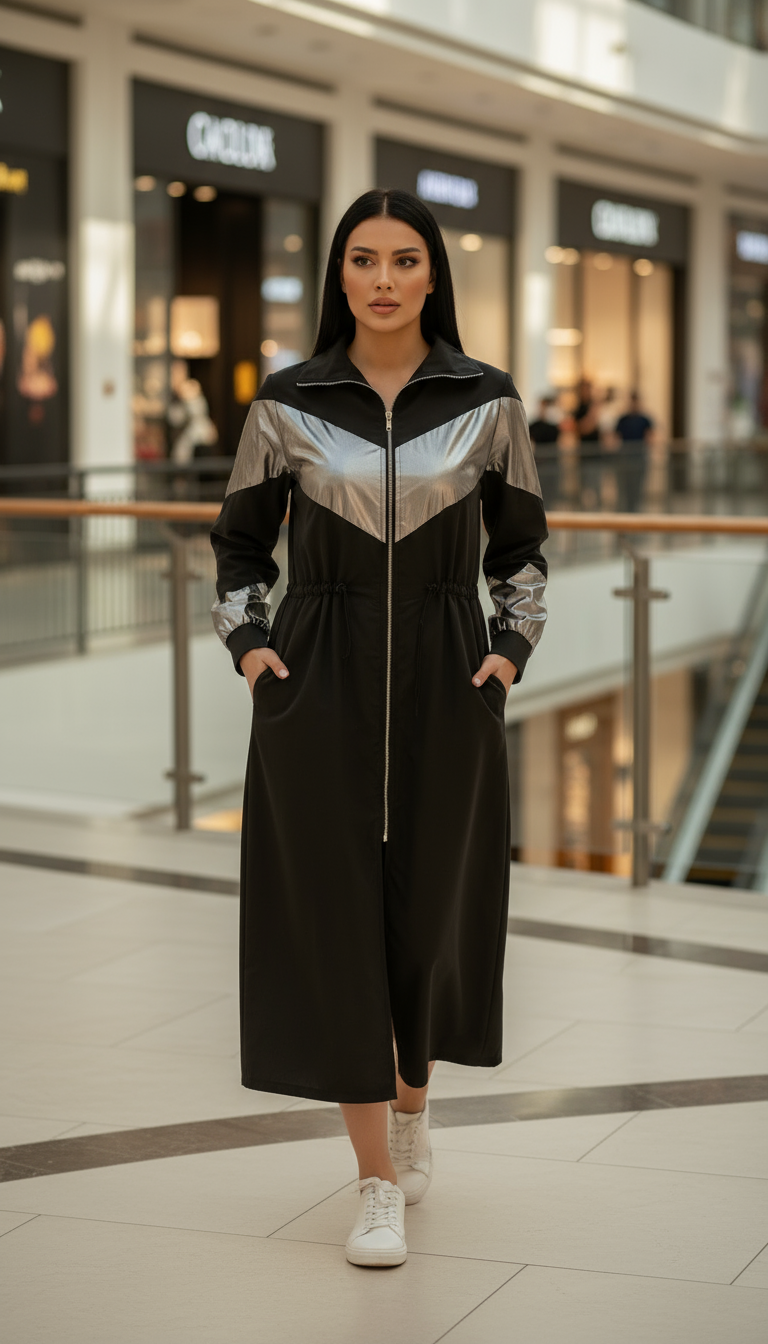 A waterproof jacket in black and silver, made from a rare, high-quality fabric similar to premium Spanish waterproof material. Designed with a long metal zipper, practical pockets, and a stylish collar for a modern and functional winter look. Available in all sizes from Small to 3XL, making it perfect for cold weather and everyday wear.